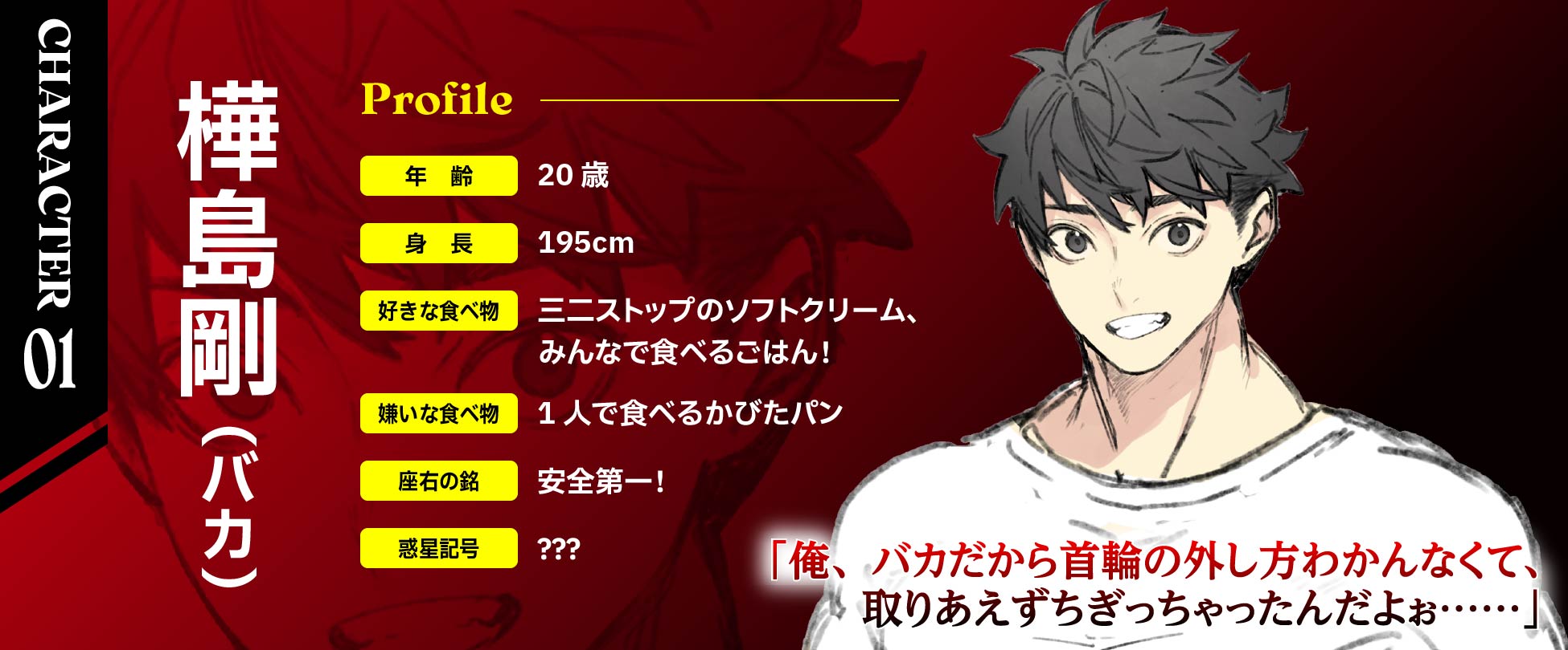 金属製の首輪を軽々と引きちぎり、鉄の扉をタックルでぶち破る悪魔泣かせのバカ力を持つ最強の男・樺島剛が紛れ込んでしまったことで、ゲームバランスは大崩壊! 次々にゲームを破壊しながら、樺島は参加者全員を救うため突き進む——!